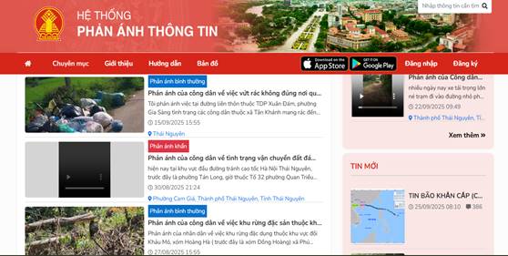 Hố ga mất nắp - xử lý kịp thời tránh tai nạn: Một phụ huynh ở phường Quán Triều phát hiện hố ga ngay cổng trường bị mất nắp, gửi phản ánh qua ứng dụng. Ngay trong ngày, đơn vị chức năng đã khắc phục, đảm bảo an toàn cho học sinh.
