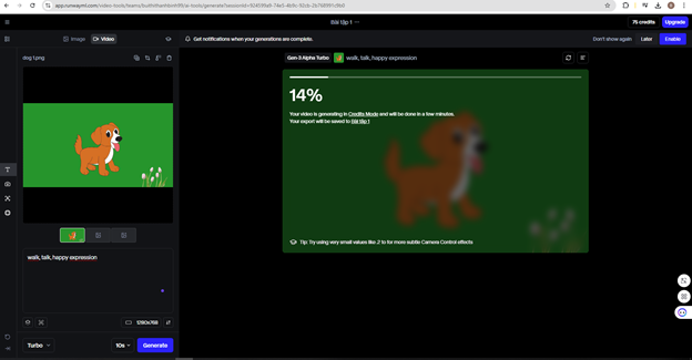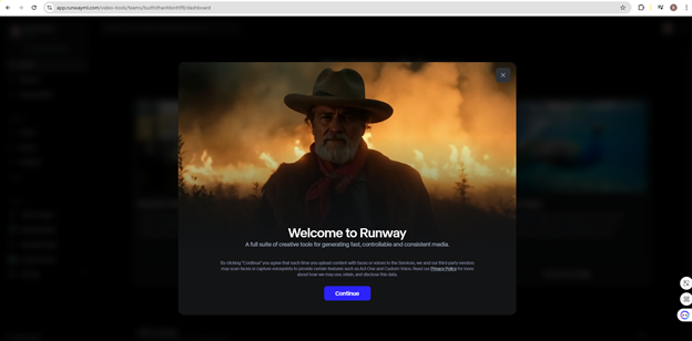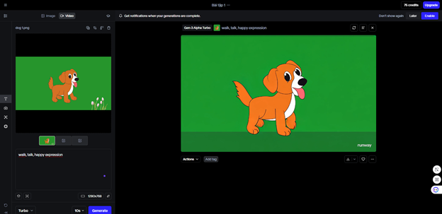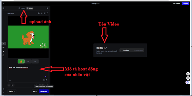 Bước 2: Vào Runway (là công cụ AI này hỗ trợ miến phí) để tạo hành động cho nhân vật.