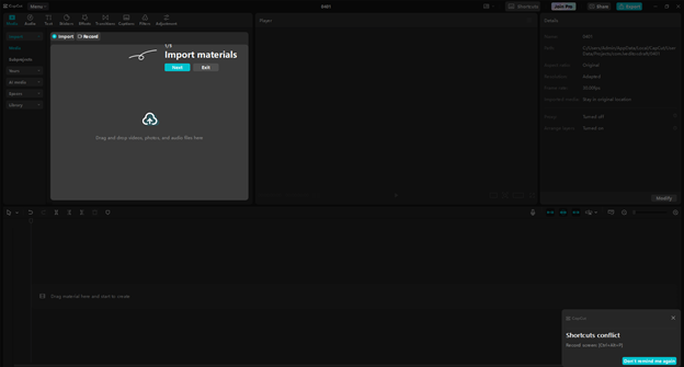 Vào Import để Import tất cả nội dung: Nền, nhân vật, audio vào