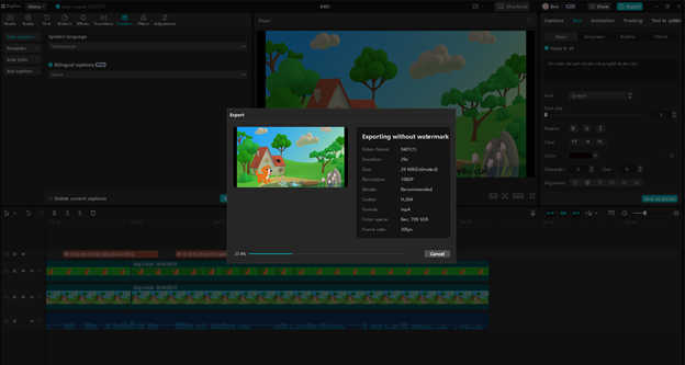 Sau khi đặt các thông số và căn chỉnh theo nhu cầu của bạn, bạn chọn Export để xuất file là hoàn thiện quá trình tạo Video như hình dưới.