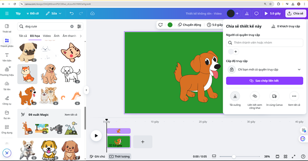 Chọn mục thành phần/gõ nội dung nhân vật cần thiết kế (ví dụ trong bài viết tôi thiết kế nhân vật chú chó đáng yêu)