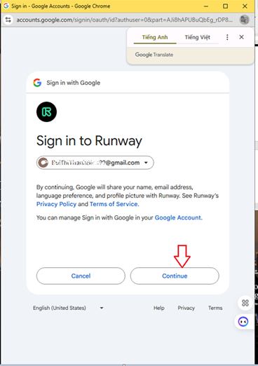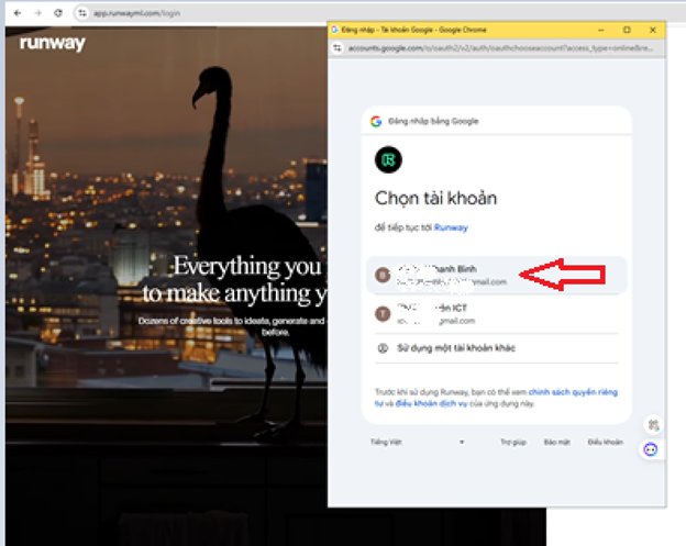Chọn try Runway Now/đăng nhập bằng google hoặc đăng ký tài khoản.