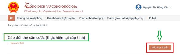 Bước 3: Sau khi chọn Cấp đổi thẻ căn cước (thực hiện tại cấp tỉnh), bạn ấn vào “Nộp trực tuyến”.