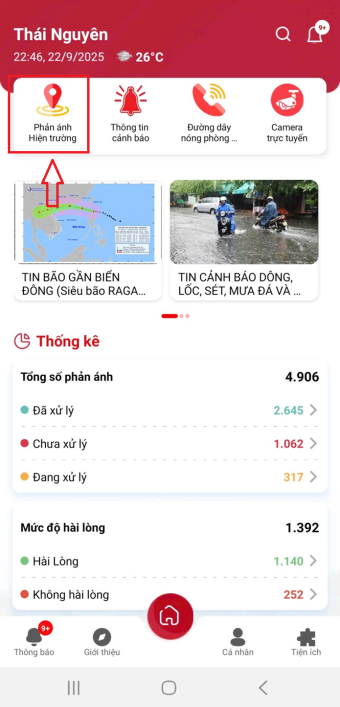 Bước 5: Chọn “Phản ánh hiện trường”. Để gửi thông tin phản ánh.